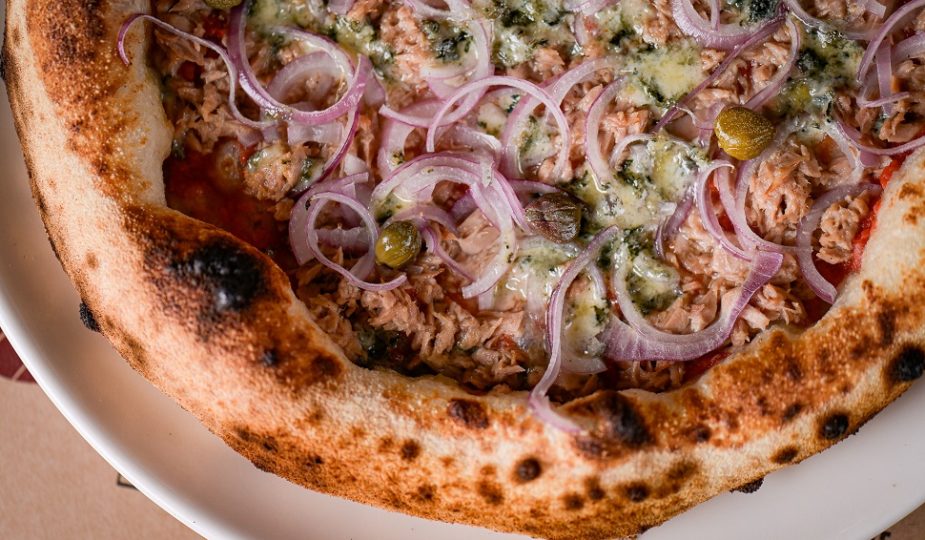 Uma homenagem às memórias de infância do chef Franco Ravioli, a pizza Tonno e Gorgonzola é uma versão gourmet da clássica pizza de atum. Esta pizza é composta por uma base de molho, atum, gorgonzola, alcaparras e cebola roxa. “A cremosidade do gorgonzola adiciona uma textura rica à pizza, contrastando com a carne macia do atum. É a pizza perfeita para quem gosta de queijos de sabores fortes e frutos do mar” comenta o chef Franco Ravioli.